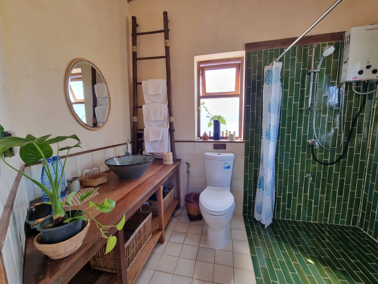 Each cabin has a toilet, shower and spacious balcony. The living room is warmed with wood and earth tones. Charming features, including cushions, curtains, basins, bathroom tiles, and lampshades are hand and heart made by local community members. The loft design ensures fresh airflow, balancing coziness with space. All bedrooms have fans and A/C. Books, toys, frisbees and footballs keep children happy! Breakfast is included, offering a choice of fresh, healthy, delicious Thai and western dishes. We look forward to welcoming you.